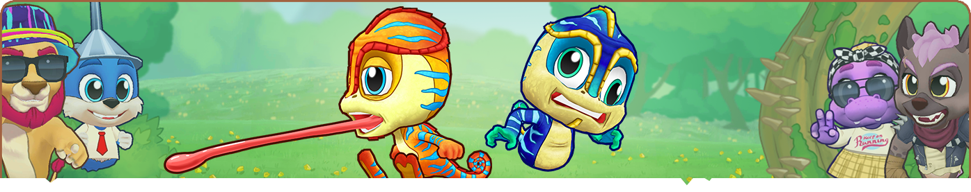 “Chameleons dwell in the dense jungle treetops, expertly camouflaged. Their fondness for eating Goo not only ages them but also triggers sporadic, frantic behavior.”